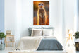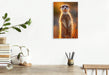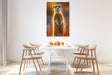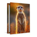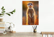 Premium Textil-Leinwand Erdmännchen steht im Sonnenuntergang und blickt neugierig