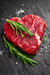 Ein herzförmiges Steak aus Rindfleisch, garniert mit frischem Rosmarin, verbindet Genuss, Leidenschaft und die Liebe zum Fleisch.