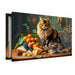 Premium Textil-Leinwand Katzenidylle mit Obst und Käse