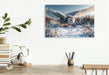 Premium Textil-Leinwand Majestätisch gleitet die Schneeeule über die weiße Winterwiese – lautlos und kraftvoll