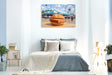 Premium Textil-Leinwand Volksfest in Bayern mit Leberkässemmel und Bier
