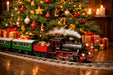 Premium Textil-Leinwand Weihnachtliche Eisenbahn unter dem Christbaum