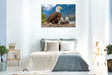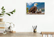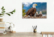 Premium Textil-Leinwand Weißkopfseeadler mit Jungvögeln im Nest vor Bergkulisse