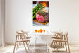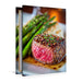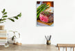 Premium Textil-Leinwand Zartes Rinderfilet mit grünem Spargel und würziger Kruste