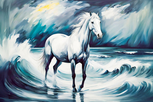 View full detailsPremium Textil-Leinwand Weißes Pferd in den Wellen