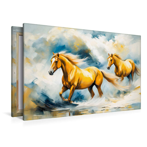 Eine Herde wilder Pferde galoppiert durch die Wellen im Stil des Expressionismus Dieses beeindruckende Motiv aus dem Kalender „Jahr des Pferdes - ...