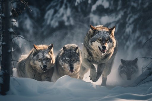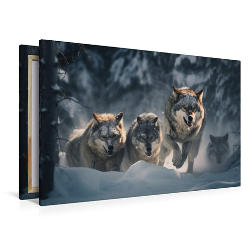 View full detailsPremium Textil-Leinwand Ein jagendes Rudel Wölfe im Winter