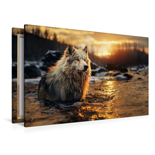 View full detailsPremium Textil-Leinwand Ein Wolf überquert einen Bergbach