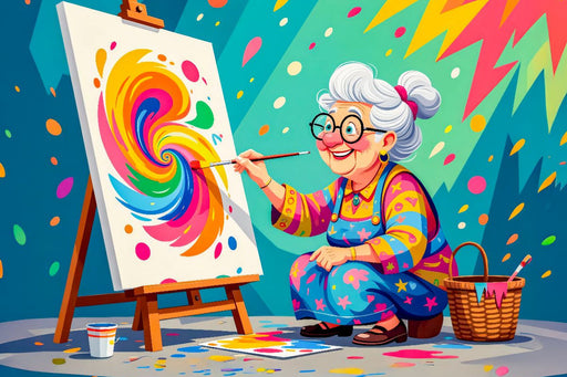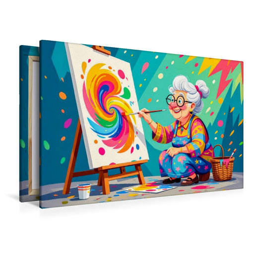 Eine kreative Oma beim Malen eines farbenfrohen impressionistischen Bildes. Das Motiv "Oma malt impressionistische Meisterwerke" aus dem Kalender ...