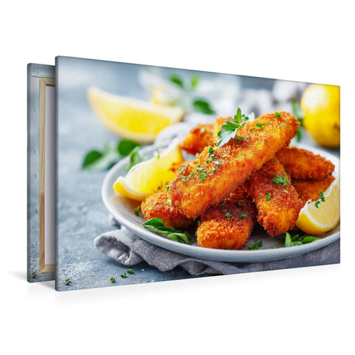 View full detailsPremium Textil-Leinwand Knusprige Fischstäbchen mit frischer Zitrone