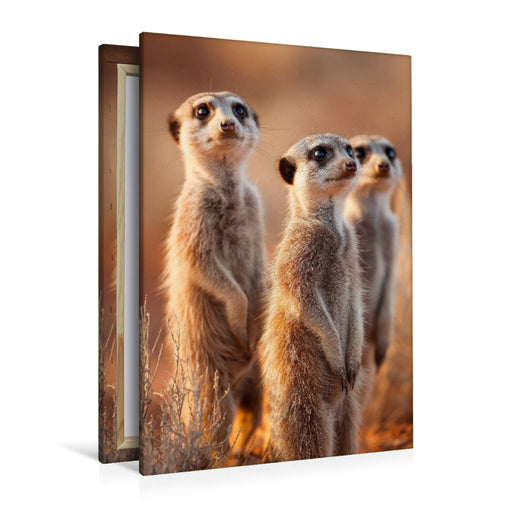 View full detailsPremium Textil-Leinwand Erdmännchen Gruppe in der Savanne beim Sonnenuntergang