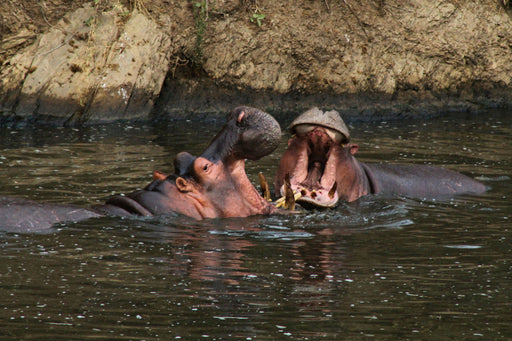 Wenn die Stille bebt Im friedlichen Schein der Dämmerung bricht plötzlich rohe Urkraft hervor: Zwei Flusspferde treffen aufeinander - ein Tanz aus...