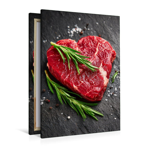 View full detailsPremium Textil-Leinwand Herzförmiges Steak aus Rindfleisch mit frischem Rosmarin