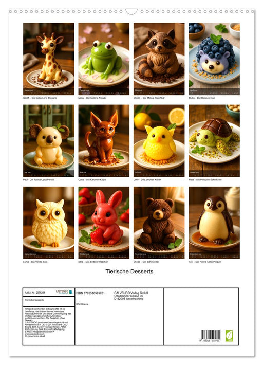 Tierische Dessertkunst für echte Genießer (Monatskalender, 14 Seiten) KI generiert. Ob Koala aus Vanillepudding, Fuchs aus Honigcreme oder Hase au...