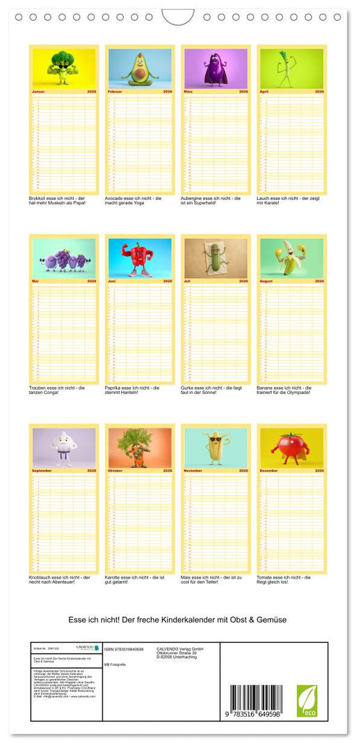 View full detailsEsse ich nicht! Der freche Kinderkalender mit Obst & Gemüse (CALVENDO Familienplaner 2026)