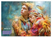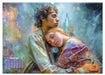 KI-generierte Werke zeigen Gesten der Liebe, tiefe Verbundenheit und Liebe zu Tieren. Die Werke sind malerisch, mit einer farbenfrohen Palette der Personen vor einem kühlenden blauen Hintergrund. Für alle Fans romantischer Harmonie.