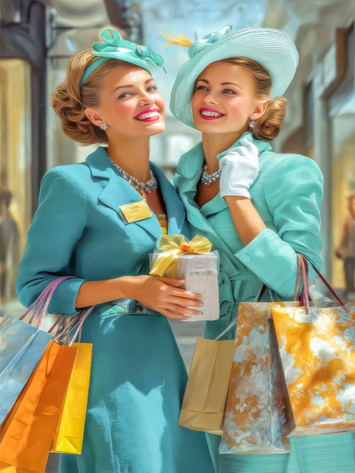 Auf Einkaufstour Erleben Sie KI-generierte Kunstwerke mit dem Thema Superreich. Gediegene Gentlemen und Ladies genießen ihren Wohlstand. Mit witzi...