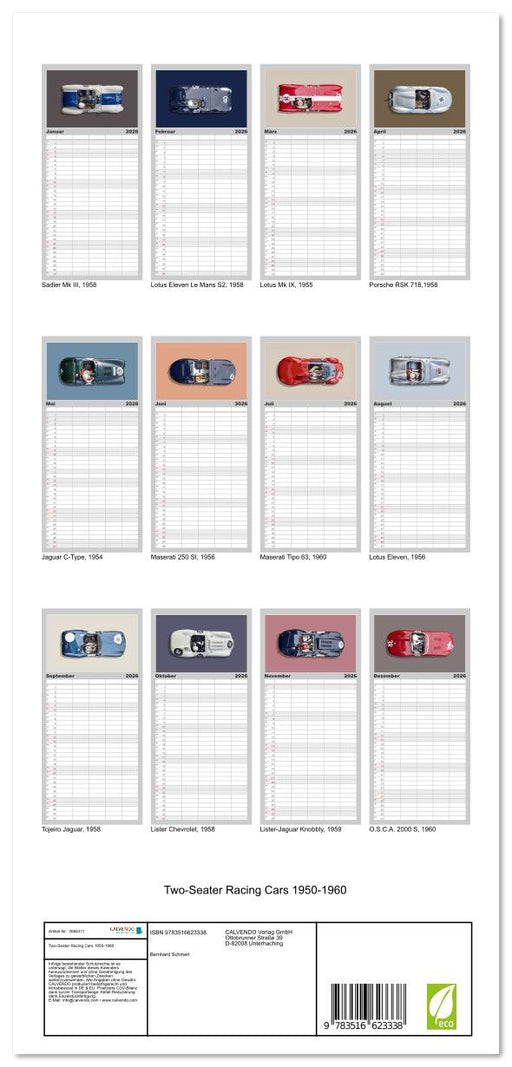 View full detailsTwo-Seater Racing Cars 1950-1960 (CALVENDO Familienplaner 2026)