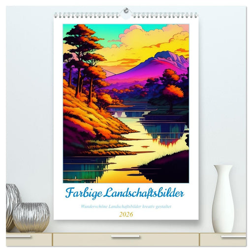 Farbenprächtige Landschaftsportraits (Monatskalender, 14 Seiten) Im Kalender entdecken sie farbenprächtige, mit KI erstellte, Landschaftsbilder un...