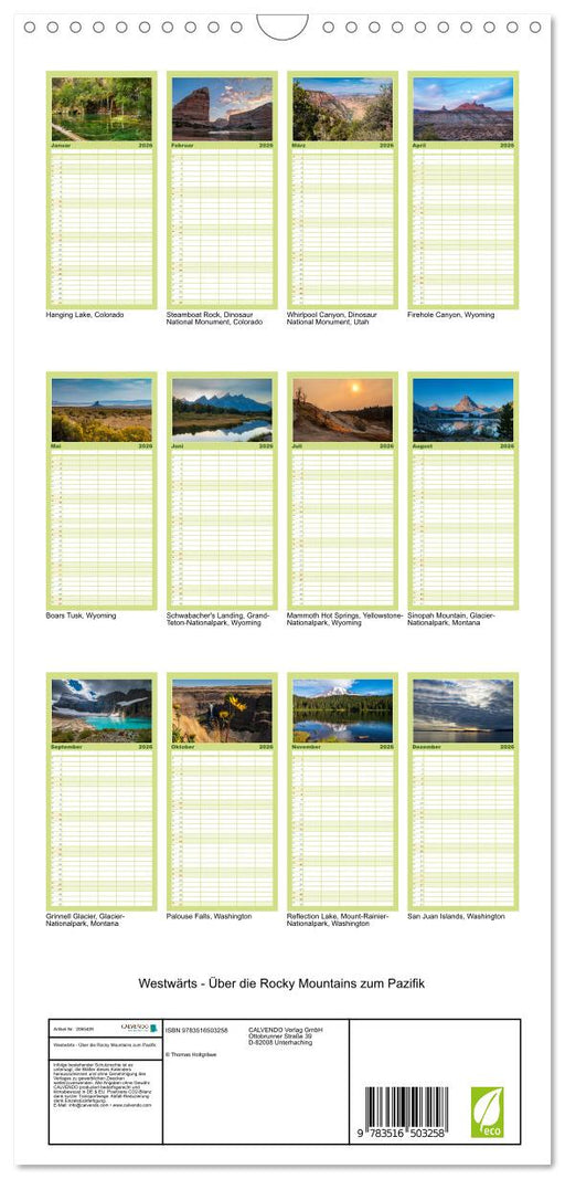 View full detailsWestwärts - Über die Rocky Mountains zum Pazifik (CALVENDO Familienplaner 2026)