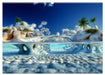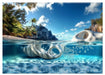 Erlebe das Unwirklich-Schöne – wo Fantasie auf Natur trifft. Der Blick unter die Wasseroberfläche. Tauche ein in eine Welt, in der die Wirklichkeit glitzert wie ein Traum. Wo das Meer smaragdgrün pulsiert, Wellen im Licht der Sterne tanzen und der Atem der Natur in jedem Windhauch spürbar wird. Am Horizont verschmilzt goldenes Sonnenlicht mit tropischer Wildnis – Palmen, Farne und leuchtende Blüten wiegen sich im Rhythmus der Stille. Unter der Wasseroberfläche öffnet sich ein neues Universum: tiefblau, geheimnisvoll, magisch. Hier ist jeder Augenblick ein Kunstwerk. Ein Ort zum Staunen, Atmen, Träumen. Alle Bilder wurden in mehreren Schritten mit Hilfe modernster KI-Technologie gestaltet.
