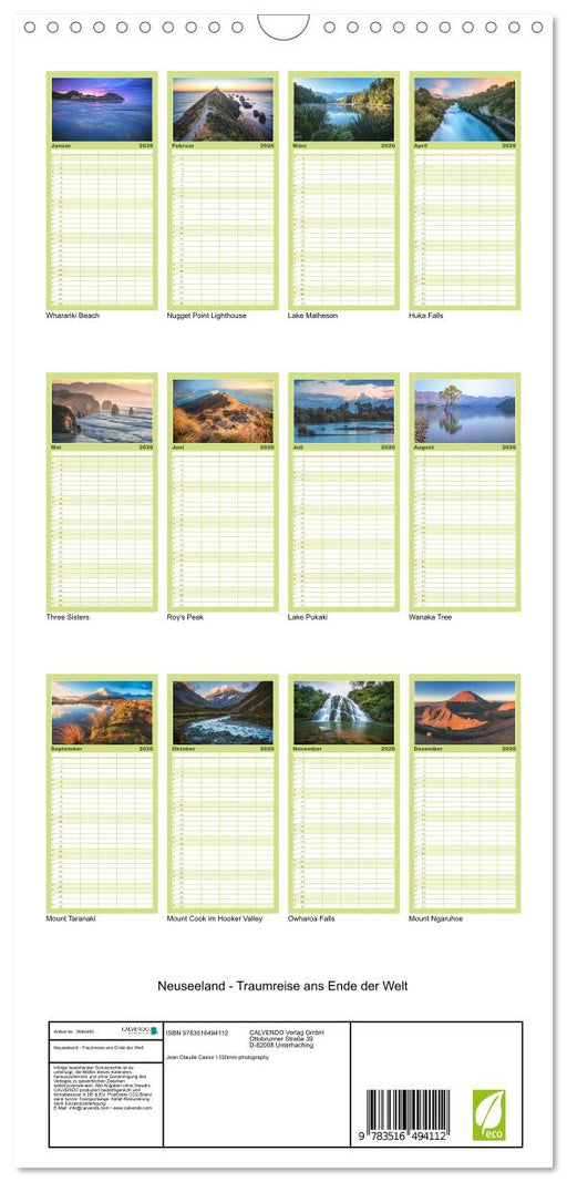 Neuseeland - Traumreise ans Ende der Welt (CALVENDO Familienplaner 2026)