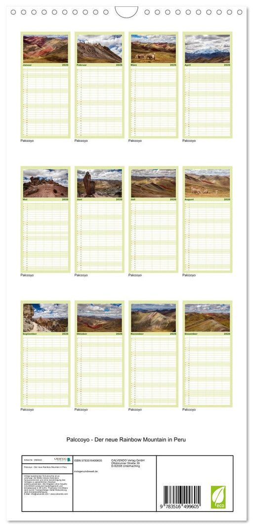 View full detailsPalccoyo - Der neue Rainbow Mountain in Peru (CALVENDO Familienplaner 2026)