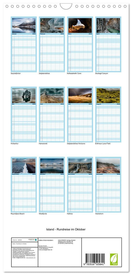 Island - Rundreise im Oktober (CALVENDO Familienplaner 2026)