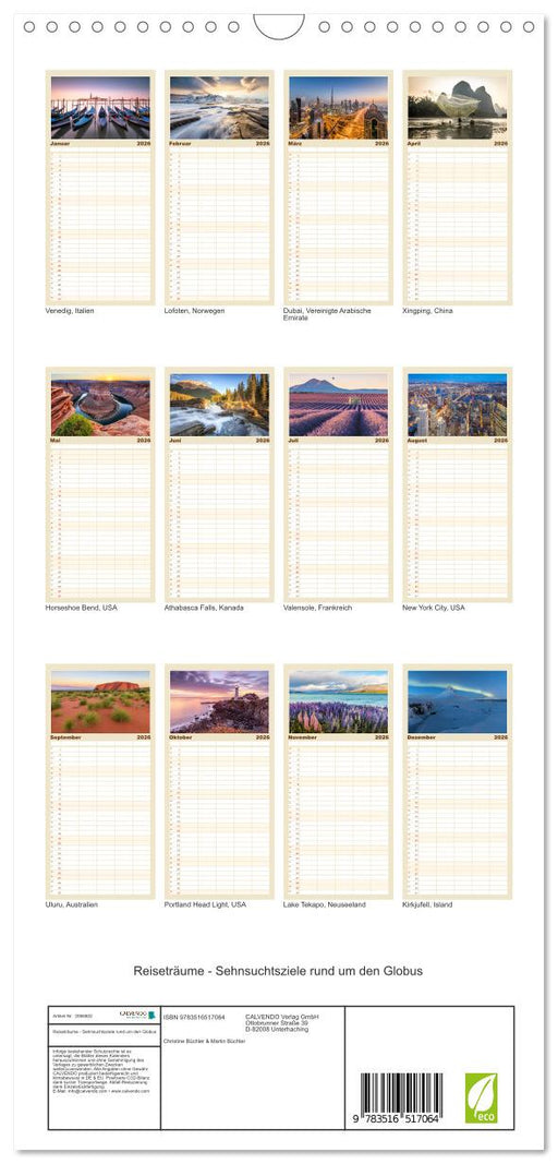 View full detailsReiseträume - Sehnsuchtsziele rund um den Globus (CALVENDO Familienplaner 2026)