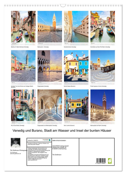 Die Lagunenstadt Venedig und die Nachbarinsel Burano, mit ihren bunten Häusern. (Monatskalender, 14 Seiten) Für diesen Kalender hat der Fotograf T...