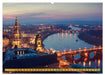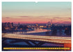 April: Blick über Waldschlößchenbrücke und Elbe auf das Panorama von Dresden zum Sonnenuntergang.