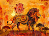 Abstraktesr Löwe in warmen Farben, inspiriert von Afrikas Tierwelt und traditionellen Mustern