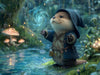 Ein niedlicher Zauberer-Otter mit Kapuze und Magie inmitten eines funkelnden Märchenwaldes