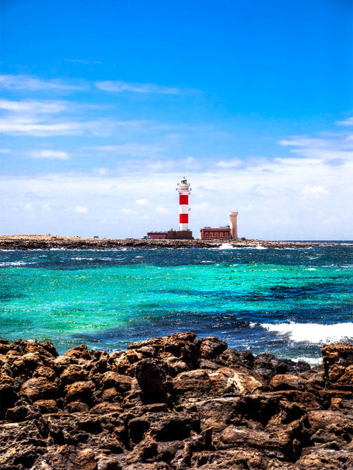 Der Leuchtturm Faro de Toston Traumhafter Blick zum leuchtturm Faro de Toston auf der Insel Fuerteventura. Die Insel steht geradezu für Wasser und...
