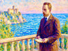 Vor der Kulisse des adriatischen Meeres und des majestätisch aufragenden Schlosses Duino zeigt dieses impressionistische Gemälde den Dichter Rainer Maria Rilke in einem Moment stiller Inspiration. Die warme Lichtstimmung, die weichen Pinselstriche und die poetische Atmosphäre machen das Bild, das Steffani Lehmann mit Unterstützung einer KI editiert hat, zu einer eindrucksvollen Erinnerung an den Ort, an dem Rilke neue schöpferische Wege fand. Ein bezauberndes Kunstwerk, das die Verbindung von Landschaft, Geschichte und innerer Einkehr spürbar werden lässt.