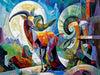 Ein Bild, das auf eine lockere, unbeschwerte Art Tiere, hier ein Steinbock, präsentiert. Im Vordergrund steht nicht die Exaktheit, sondern die Farbigkeit und die Freude an den Farben.
