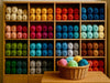 Sauber sortiert, farblich abgestimmt: Dieses Bild, das Steffani Lehmann mit Unterstützung einer KI editiert hat, zeigt die stille Schönheit von Wolle in Reih und Glied. Ein Blickfang für alle, die Stricken nicht nur als Handwerk, sondern auch als Ästhetik erleben.