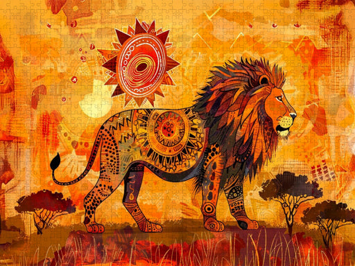 Abstraktesr Löwe in warmen Farben, inspiriert von Afrikas Tierwelt und traditionellen Mustern Das Motiv stammt aus dem Kalender „Abstraktes Afrika...