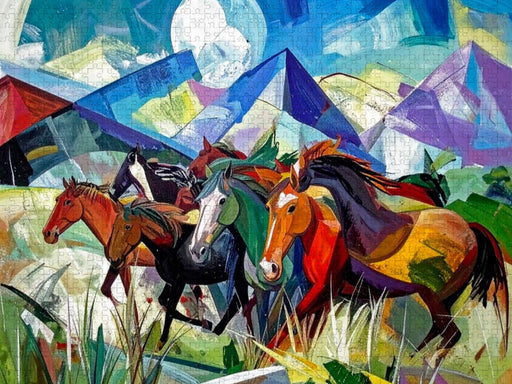 Die heimische Tierwelt in bunten Farben Ein Bild, das auf eine lockere, unbeschwerte Art Tiere, hier eine Pferdeherde, präsentiert. Im Vordergrund...