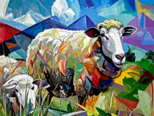 Die heimische Tierwelt in bunten Farben Ein Bild, das auf eine lockere, unbeschwerte Art Tiere, hier ein Schaf, präsentiert. Im Vordergrund steht ...