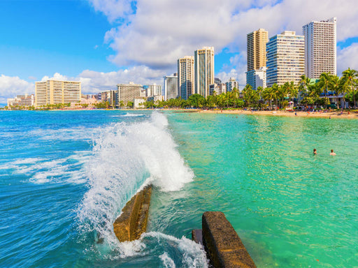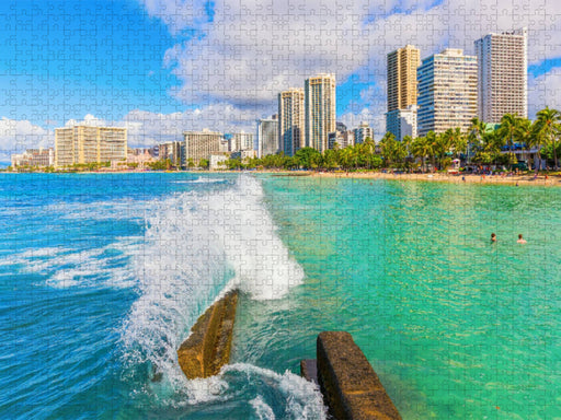 View full detailsBlick auf Waikiki Beach mit den Hochhäusern von Honolulu im Hintergrund - CALVENDO Foto-Puzzle'