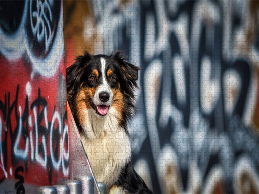 View full detailsAustralien Shepherd Potrait vor einer Graffitiwand - CALVENDO Foto-Puzzle'