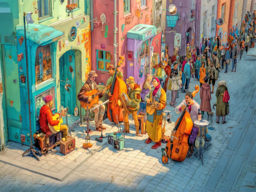 Musikanten unterhalten das Volk Ob fröhliche Musiker, stolze Hunde, eine Horde Katzen oder die modebewussten Kids der Stadt, diese KI-generierten ...