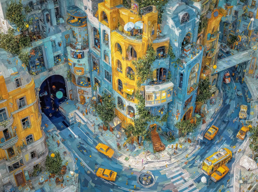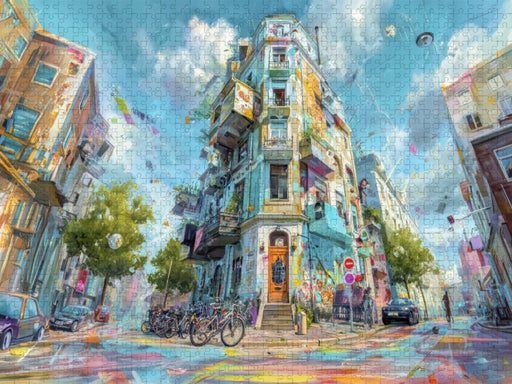Kreative Stadtwohnungen Ob Radfahrer, stolze Hunde oder ein buntes Auto in der Stadt, diese KI-generierten Werke zeigen eine turbulente Welt volle...