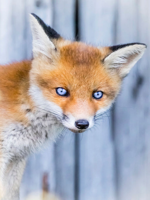 Junger Fuchs mit außergewöhnlich blauen Augen Tauche ein in die bezaubernde Welt der Fuchswelpen! Kleine Abenteurer, die voller Neugier und Lebens...