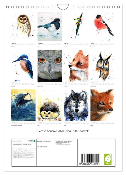 View full detailsTiere in Aquarell 2026 - von Ruth Trinczek (CALVENDO Wandkalender 2026)