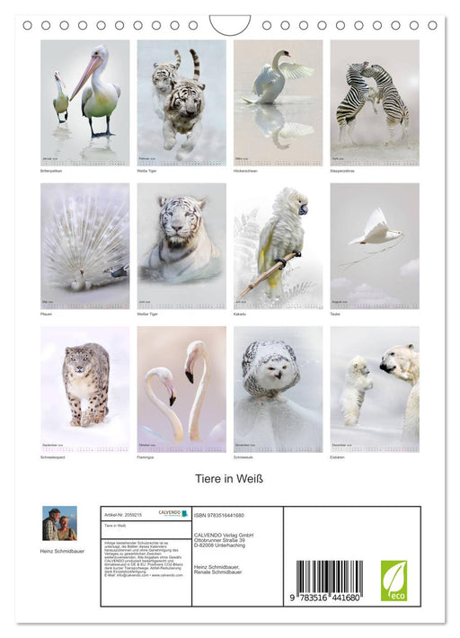 Für ein weißes Ambiente - Tiere passend in Weiß (Monatskalender, 14 Seiten) Wer für sein Ambiente in Weiß bevorzugt - hier der entsprechende Kalen...