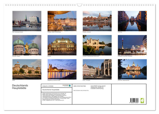 12 faszinierende Fotos der Hauptstädte deutscher Bundesländer in einem Kalender vom Reisefotografen Peter Schickert. (Monatskalender, 14 Seiten) D...