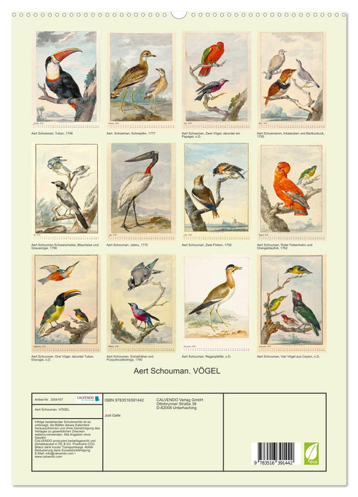 Aert Schouman. VÖGEL (CALVENDO Premium Wandkalender 2026)