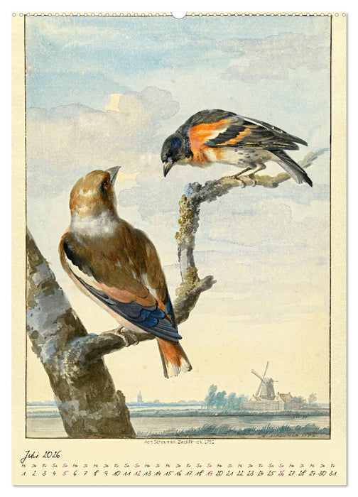 Juli: Aert Schouman, Zwei Finken, 1752